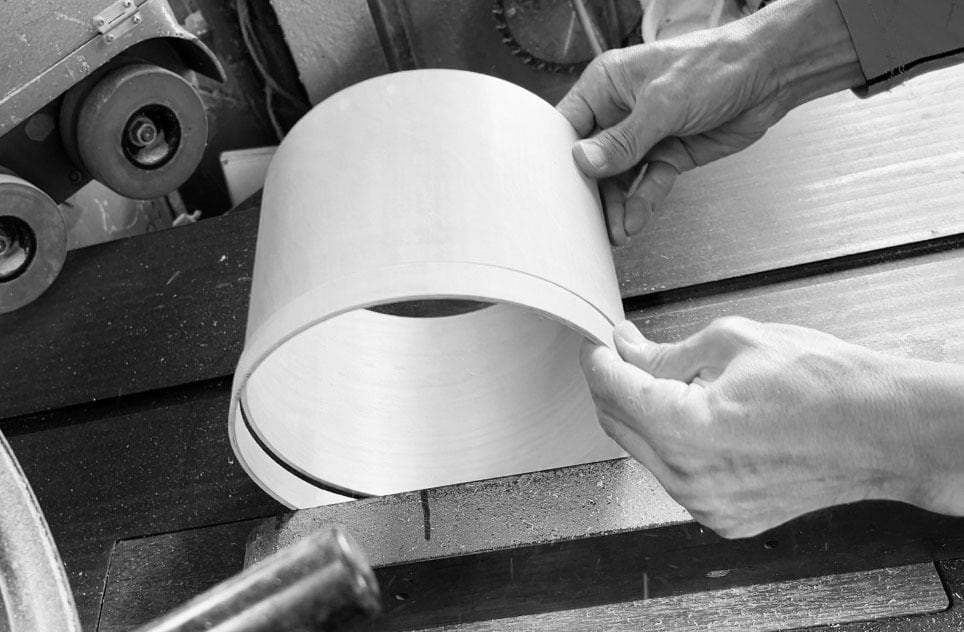 野上工芸は和歌山県海南市にある工房で製造された安心の国内製品です。職人が丁寧な作業を心掛け、一つ一つの工程に心を込めて手作業で製造していきます。天然木化粧合板を使用することにより、一枚木で作られた製品より軽量です。また、弊社の曲げる技術によって、真円に近い状態の輪っかを製造することができます。